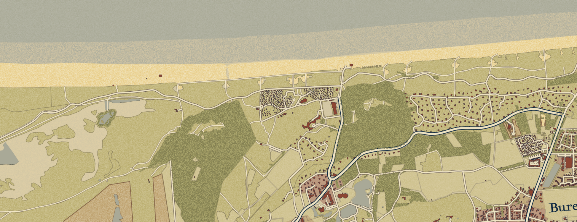 Een Ameland-kaart met een vintage en gedimde kleurstelling uit de streken-reeks. Deze prent is verkrijgbaar in vier formaten en op 250 grams papier of dibond.