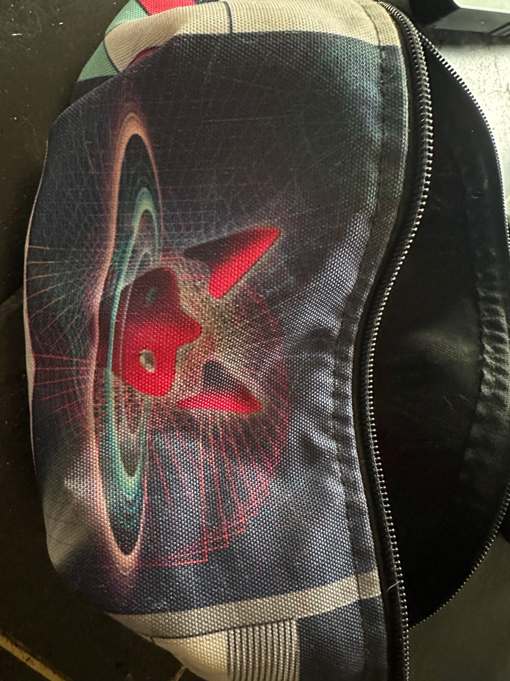 DE OG Fannypack van MIAUW Queernight, opbrengst gaat naar Stichting MIAUW. Print is gebaseerd op de poster van editie X (8 juli 2022)