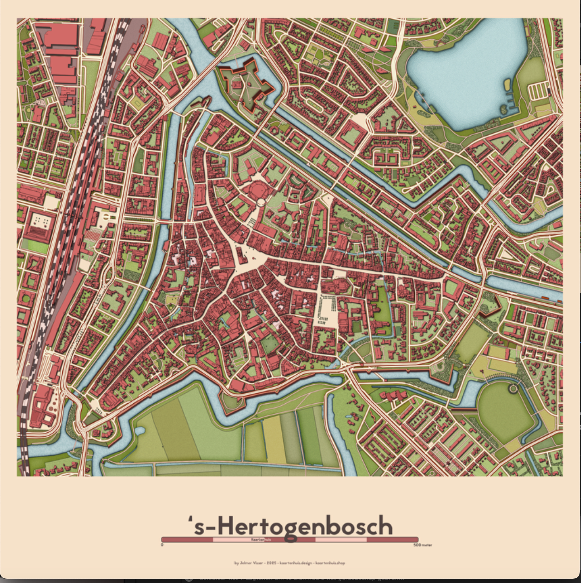 De stadskaart van 's-Hertogenbosch met een matte coatinglaag voor extra bescherming en mooiere kleuren.
