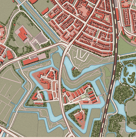 De stadskaart van Den Helder in klassieke oranje, blauw, groene stijl.