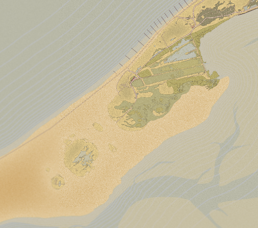 Een Vlieland-kaart met een vintage en gedimde kleurstelling uit de streken-reeks. Deze prent is verkrijgbaar in vijf formaten en op 250 grams papier of dibond.